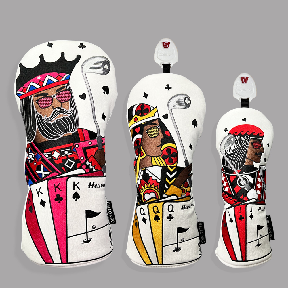 - ゴルフヘッドカバー ウッド用カ バー ドライバー用カバー ユーティリティ UT用カバ ー トランプ 黒、白 3点セット 自由に組み合わせ
