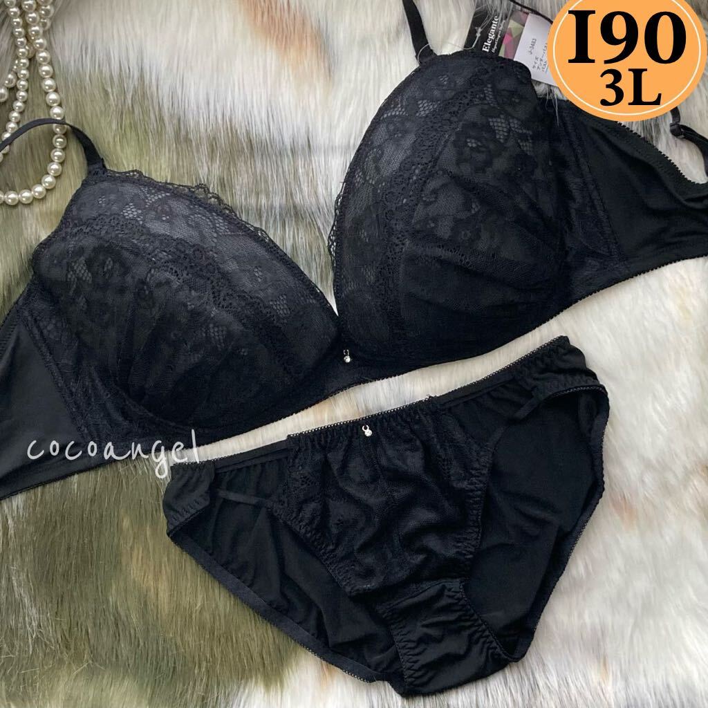 - 【I90/3Lブラック 上下セット】新品 ブラ&ショーツセット ブラジャー ショーツ パッド付き レース セクシー グラマー Iカップ 大きいサイズ