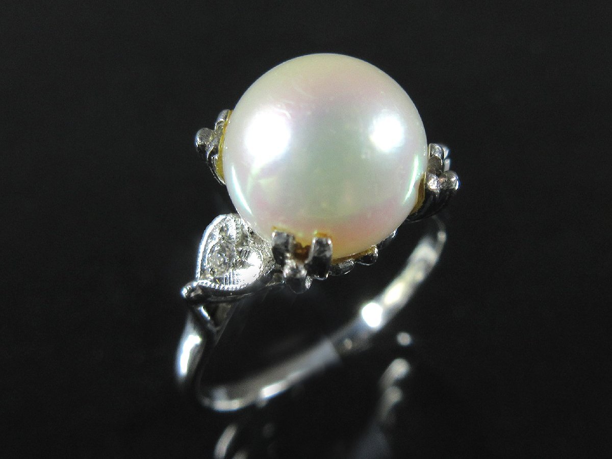 - Pm 9.6mm アコヤ真珠 2Pダイヤ ハートミル打ち 透かし台座 プラチナ リング 19号 中央宝石研究所鑑別書付 J185