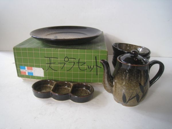 - 未使用品 ロイヤルマルイシ 天ぷらセット 陶器のお皿 小鉢 薬味入れ だしポット/24N9.19-30