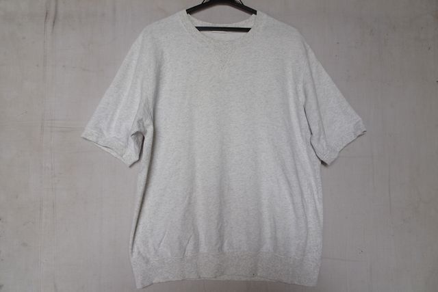 - GU/ジーユー/341-314504/スウェットTシャツ/5分袖/オーバーサイズ/首ぐりガゼット/身頃脇リブ切替/ライトグレー杢/XLサイズ(9/25R)