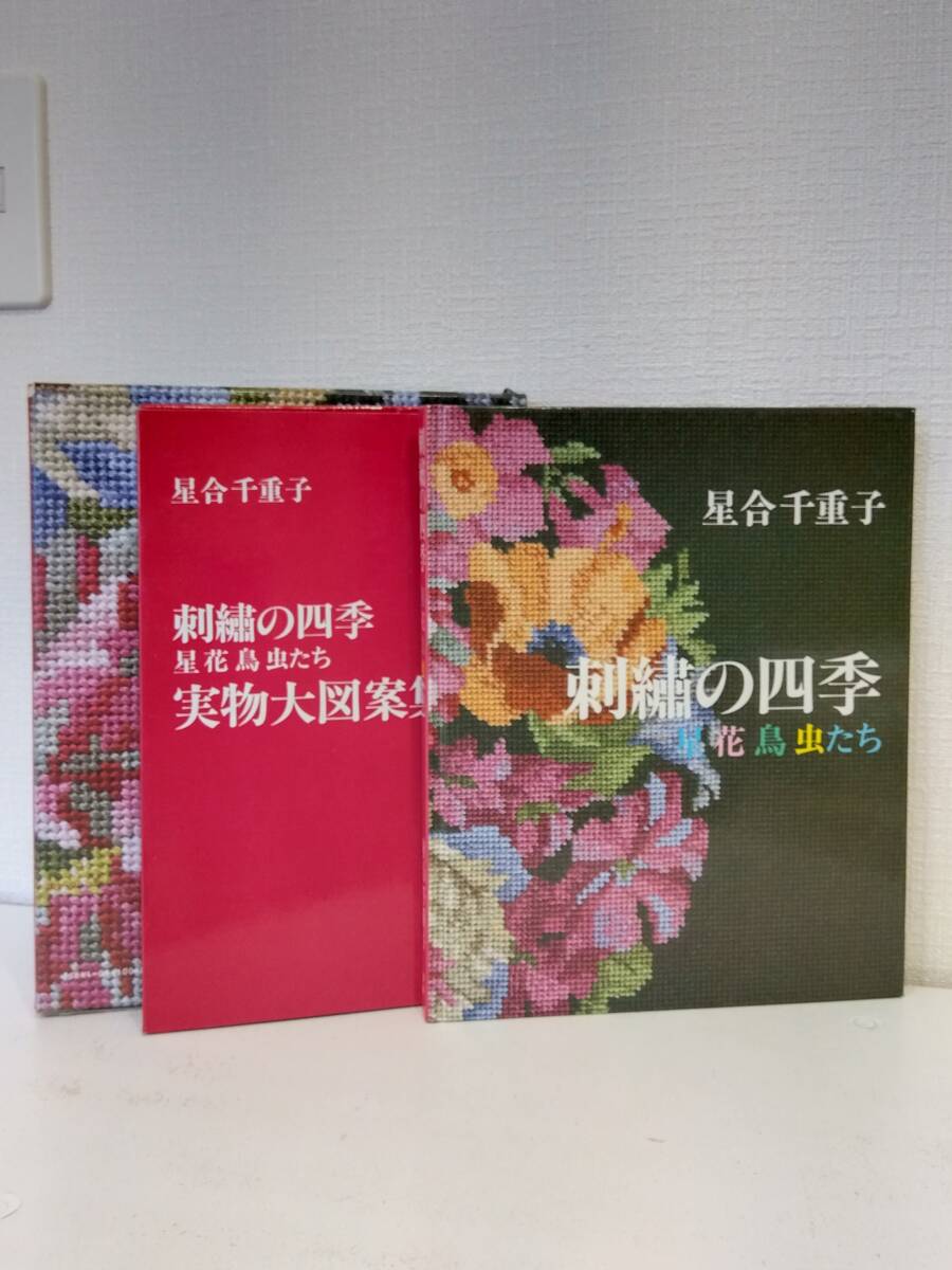 - 手■ 星合千重子 刺繍の四季 星花鳥虫たち 本冊・図案集共 学習研究社
