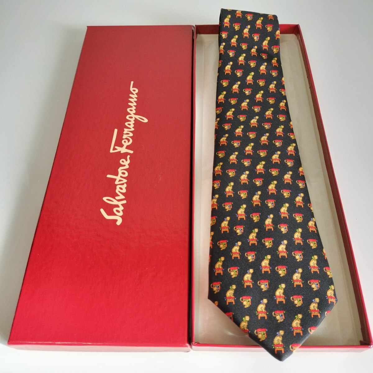 - Salvatore Ferragamo(サルヴァトーレフェラガモ)椅子に虎ネクタイ