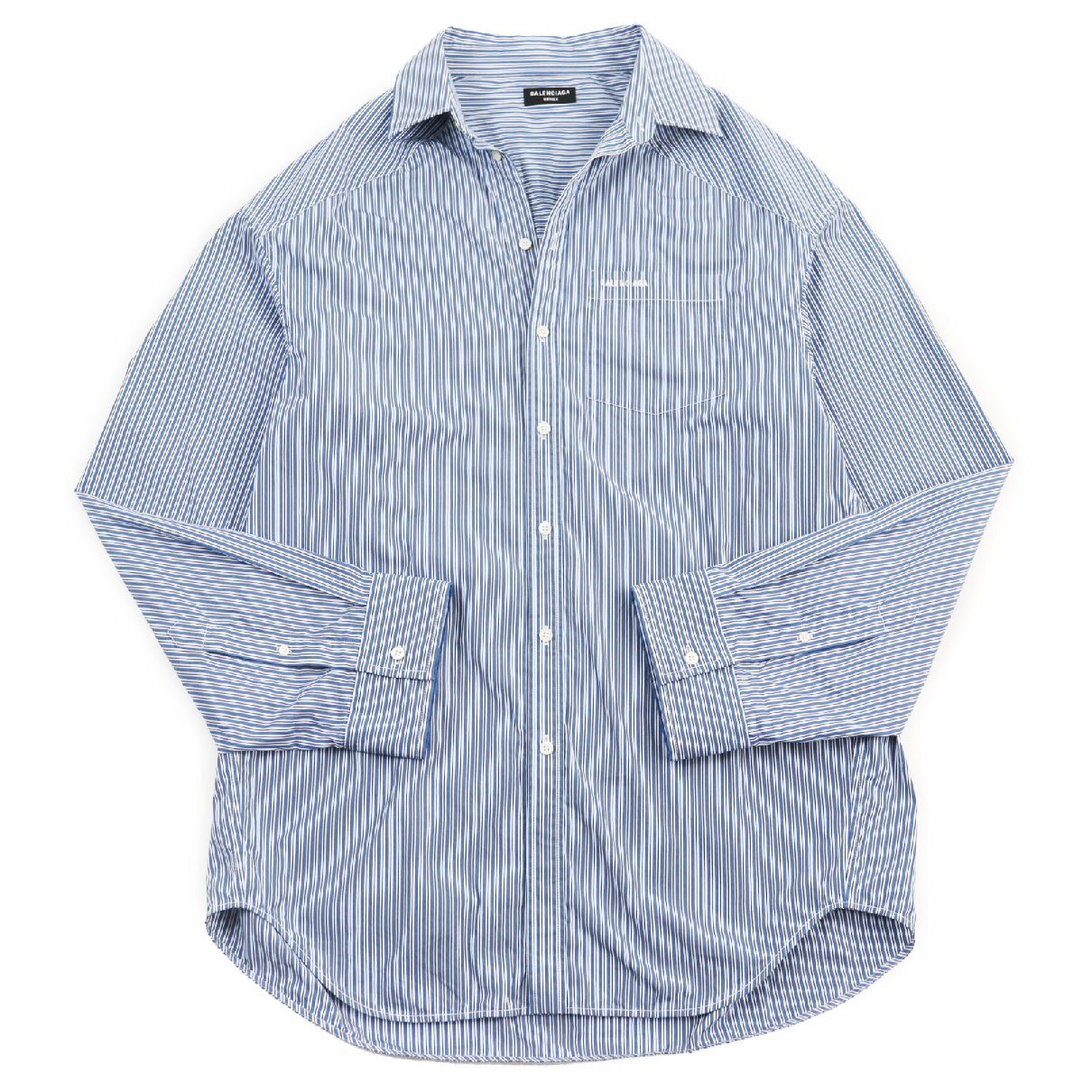 - 美品●BALENCIAGA バレンシアガ 2021年製 665150 ストライプ柄 変形オーバーサイズシャツ 長袖シャツ ブルー M 正規品 ユニセックス