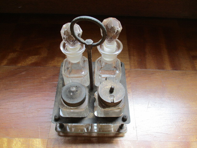- ガラス調味料卓上スタンド醤油ソース塩コショウ台所古道具骨董インテリア卓上ガラス瓶レトロビンテージアンティーク