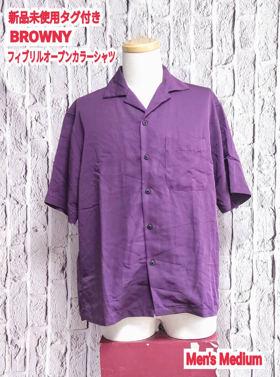 - ★送料無料★ 新品 BROWNY フィブリルオープンカラーシャツ ブラウニー オーバーサイズシャツ メンズ 半袖シャツ Medium