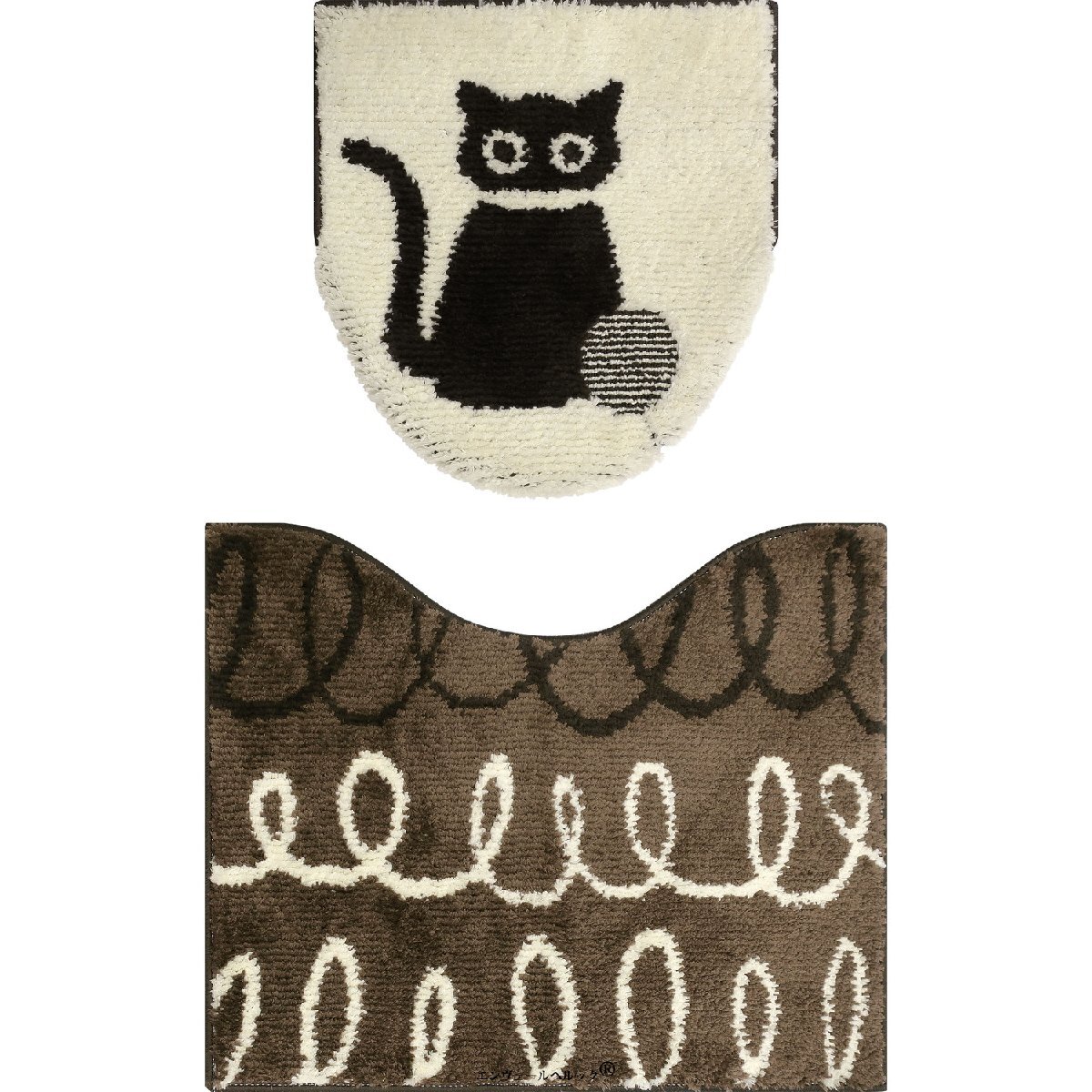 > 北欧風 ふんわりと柔らかい肌触り トイレマット フタカバー 2点セット 50×60cm キャット柄 ファブリック 優しい色合い 洗濯機丸洗いOK
