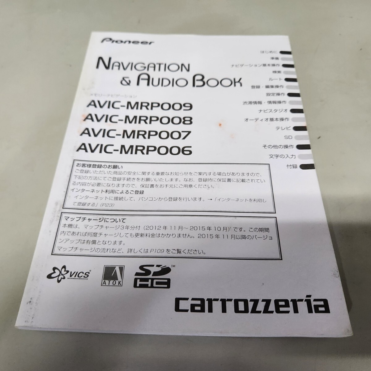 > carrozzeria カロッツェリア AVIC-MRP009 MRP008 MRP007 MRP006 取説 取扱説明書 取扱書 マニュアル メモリーナビ