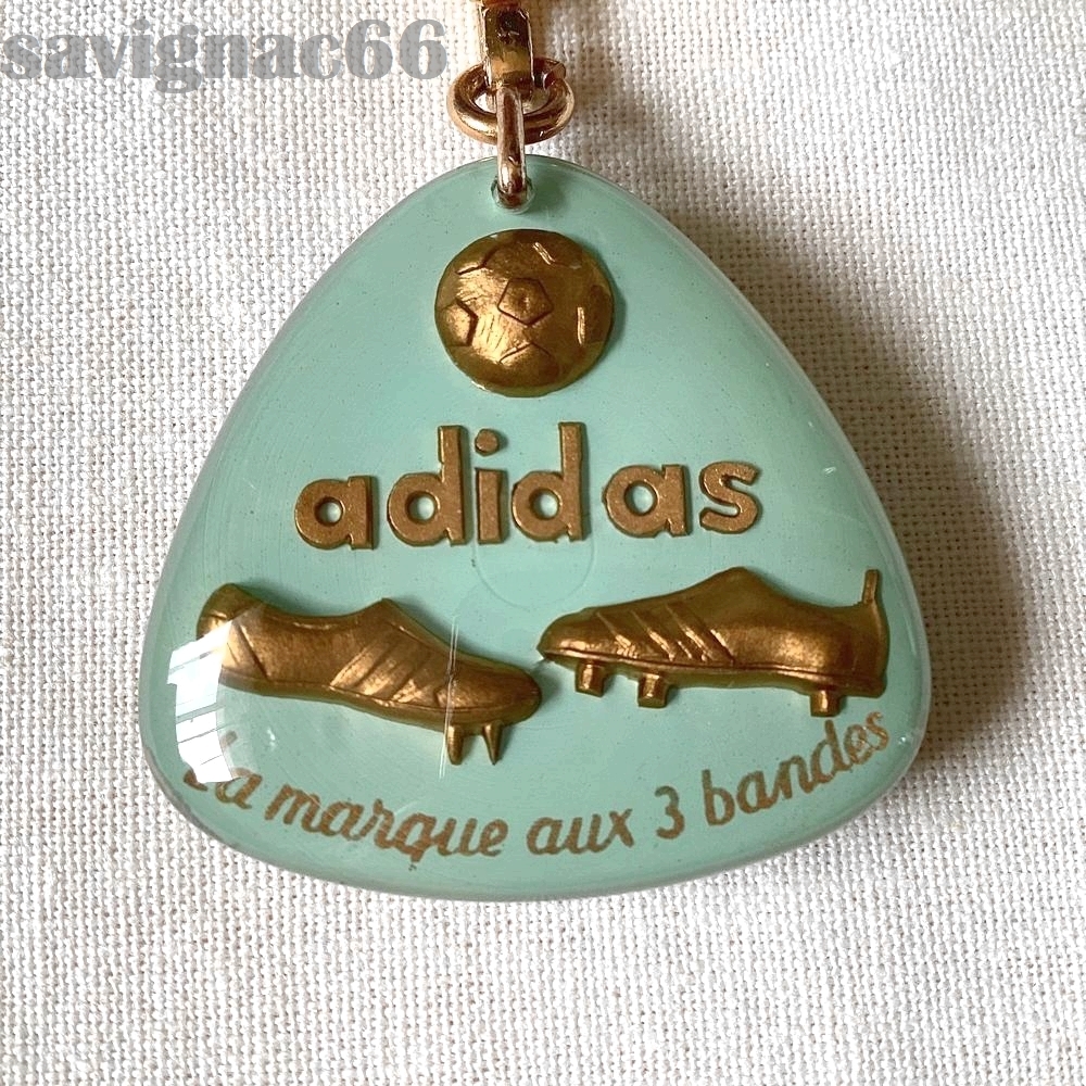 > 60年代 フレンチキーホルダー ブルボン adidas アディダス ゴールド ★ 60s フランス vintage 旧ロゴ トレフォイル 以前 ロゴ オリジナルス