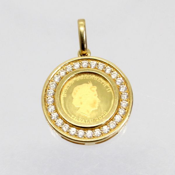 - ◎中古美品◎18金枠 ダイヤ 0.71ct 25分の1オンス 純金コイン ペンダント