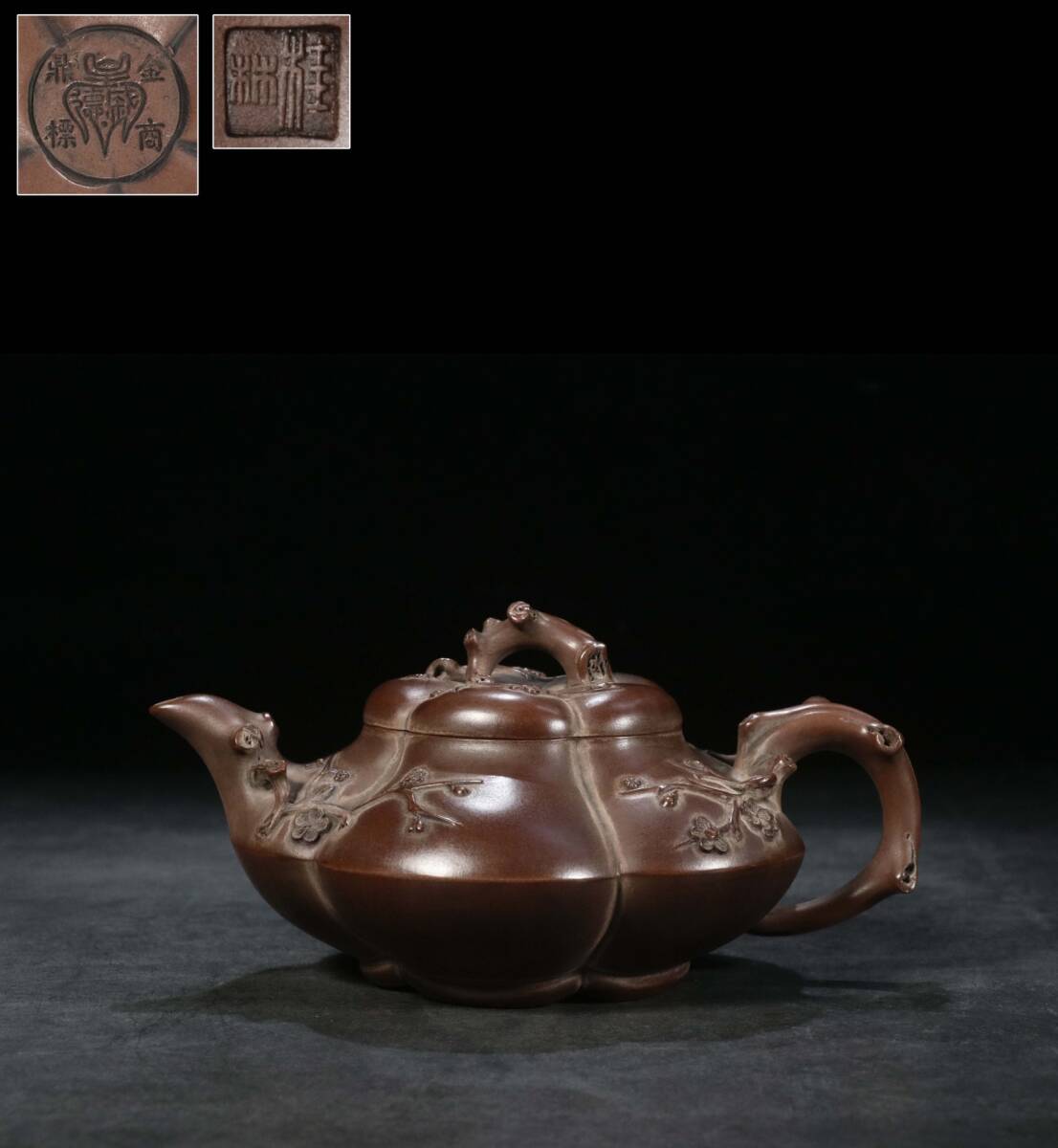 - 古陶芸 紫砂壷 中国・近現代 【金鼎商標 桂林】 製 「上合梅壷」 段泥 煎茶 急須 在銘 茶道具 唐物 茶器 時代物 LT-2409267