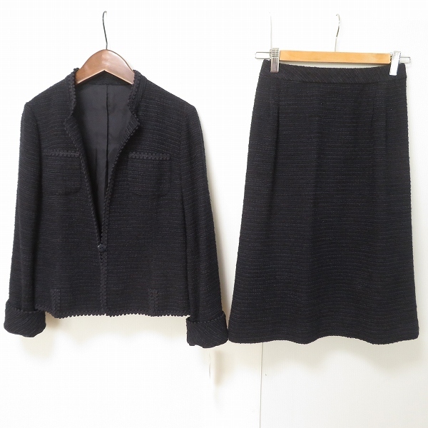 > #anc レリアン Leilian スカートスーツ 7 セットアップ 紺 ツイード ラメ レディース [840103]