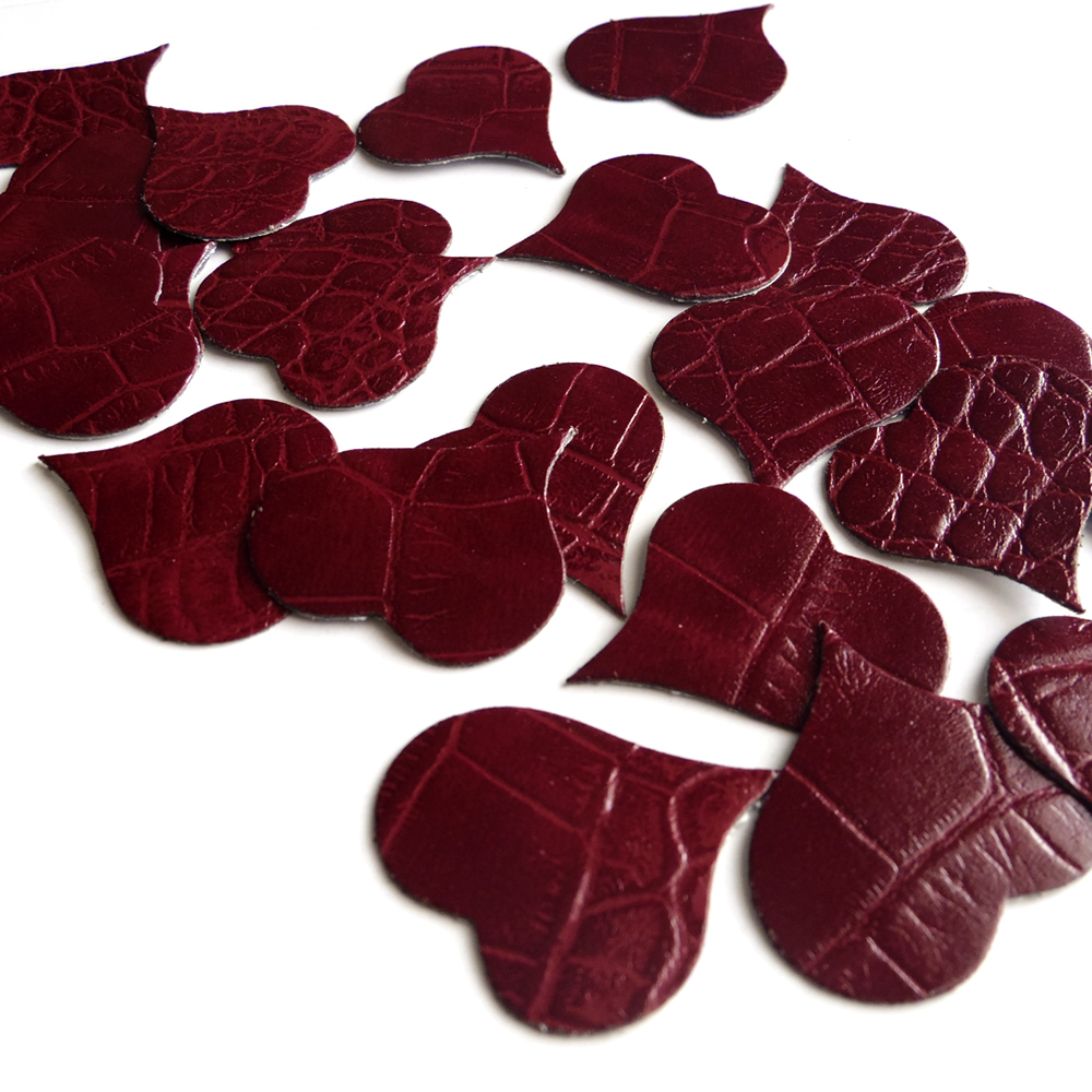 - 送料110円~★リサイクルレザー革ハートシールステッカー20枚入★クロコ型押しボルドー