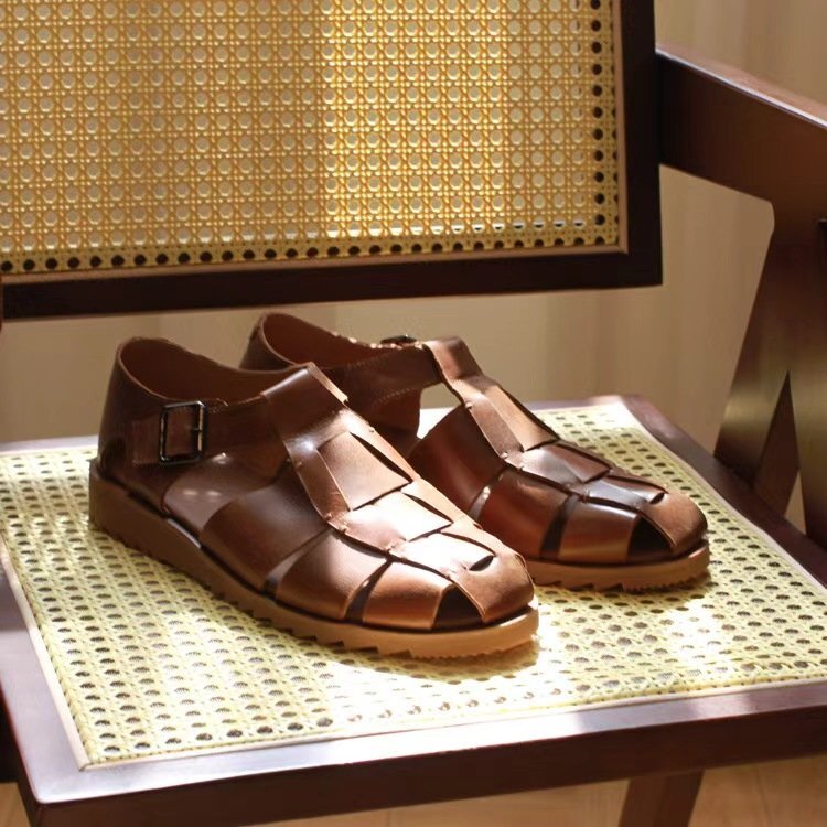 - LRM4024★極希少★ 編み込み メンズ レザーサンダル 本革 グルカサンダル 職人手作り 本革 ビジネスシューズ 紳士靴 革靴 ビーチ
