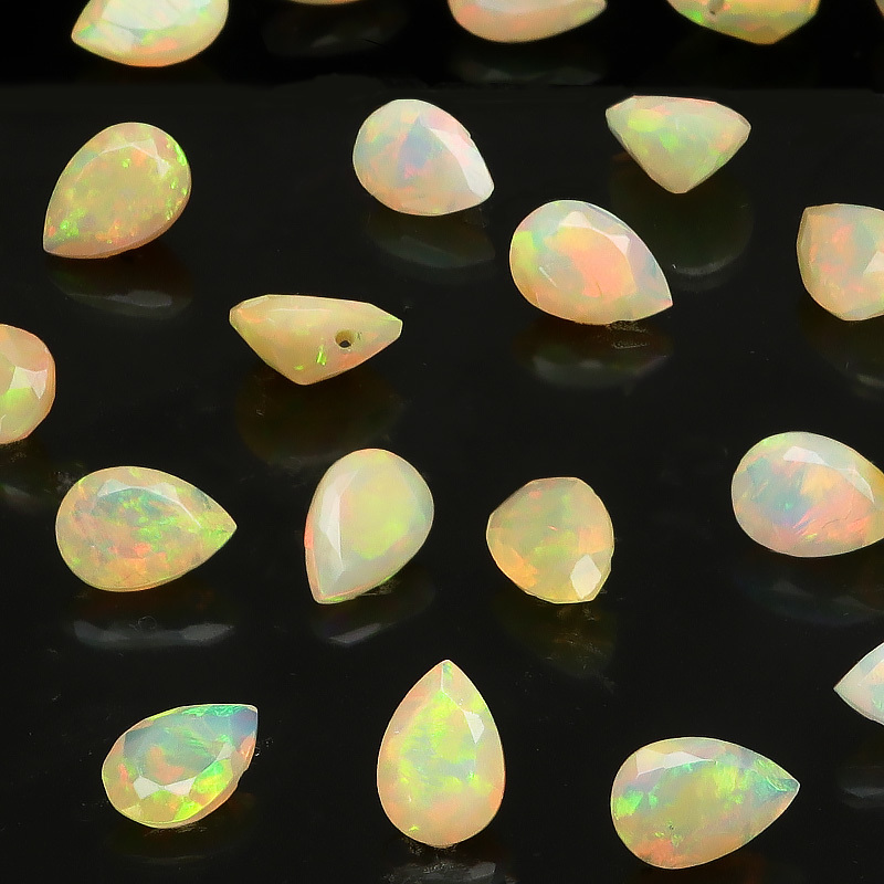 - 粒販売 エチオピア産 プレシャスオパール ペアシェイプファセットカット 6×4mm[プレミアムカット]【2粒販売】 / T056 OP6PS