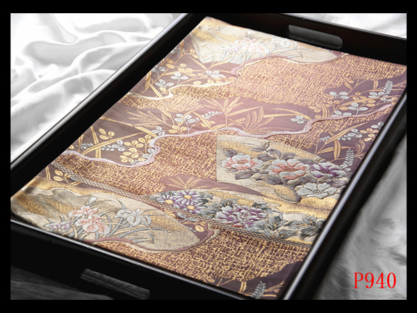 - P940厳選西陣 扇面草花紋 薄梅鼠色地 気品豊かに 正絹純金糸六通高級美術袋帯 ◇検◇簪着物名古屋帯帯締め