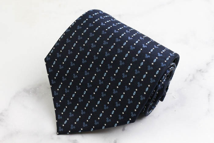 > ディズニー ブランド ネクタイ シルク 小紋柄 ミッキーマウス TDL ロイズ 未使用タグ付 PO メンズ ネイビー Disney