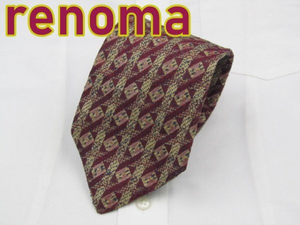 - 【レノマ】 OD 000 レノマ renoma ネクタイ 赤系 ストライプ ジオメトリック ジャガード