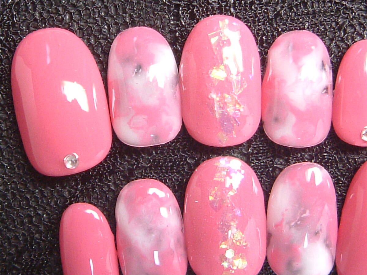 - Y★即決【ミディアム・ショート】シェル★マーブル★ネイルチップ★233
