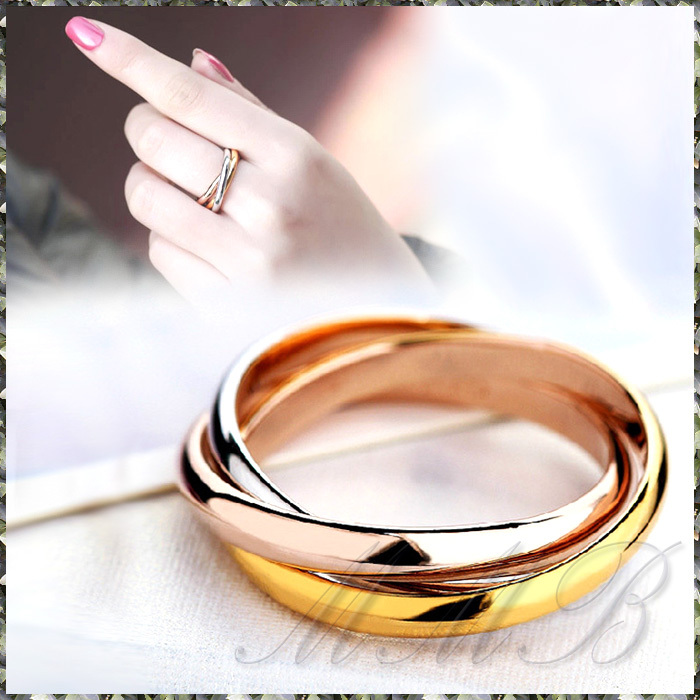 - [RING] Yellow Rose White Gold 3 Circles イエロー ローズ ホワイト ゴールド 3連 トリニティ エレガント リング 26号 (5.2g)