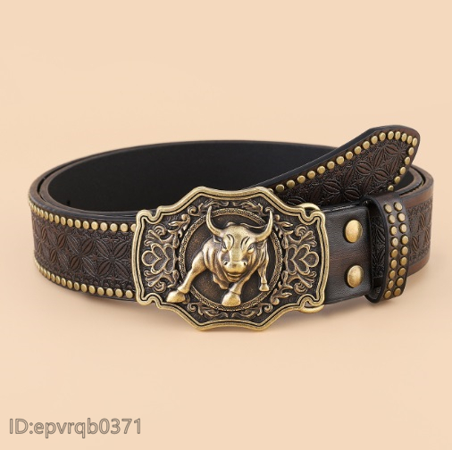 - レザーベルト※新入荷 メンズベルト ピンバックル式 牛バックル 柄物 革ベルト レトロ 紳士用 長さ調整可能 ポンチ付き /茶色