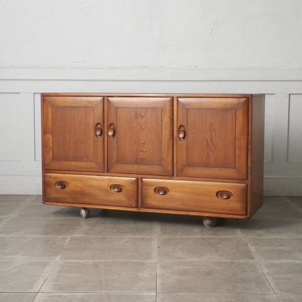 > IZ75503N★Ercol キャスター サイドボード 英国 ビンテージ アーコール 無垢材 エルム AVボード ローボード チェスト 食器棚 イギリス 木製