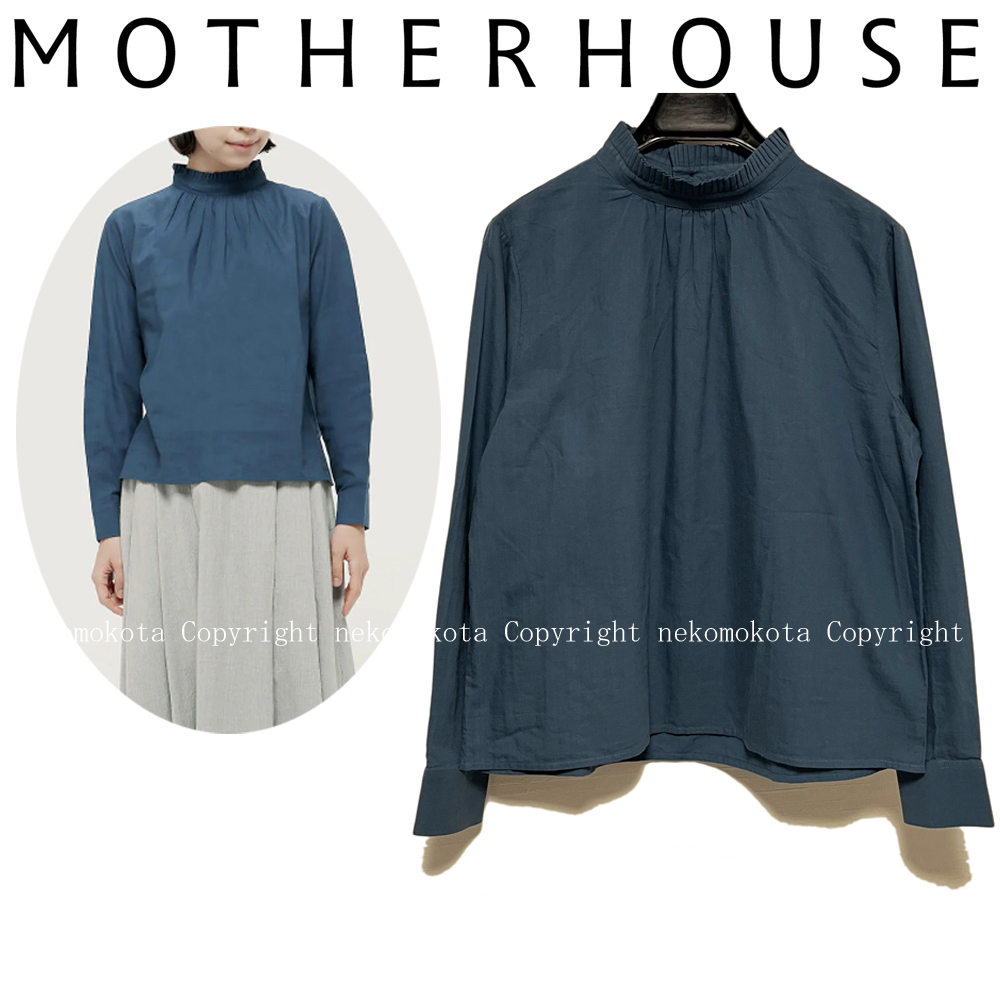 - 未使用タグ付き マザーハウス 150dt インド カディ ギャザー シャツ M ホライゾンブルー Khadi Gathered Shirt 長袖 ブラウス MOTHER HOUSE
