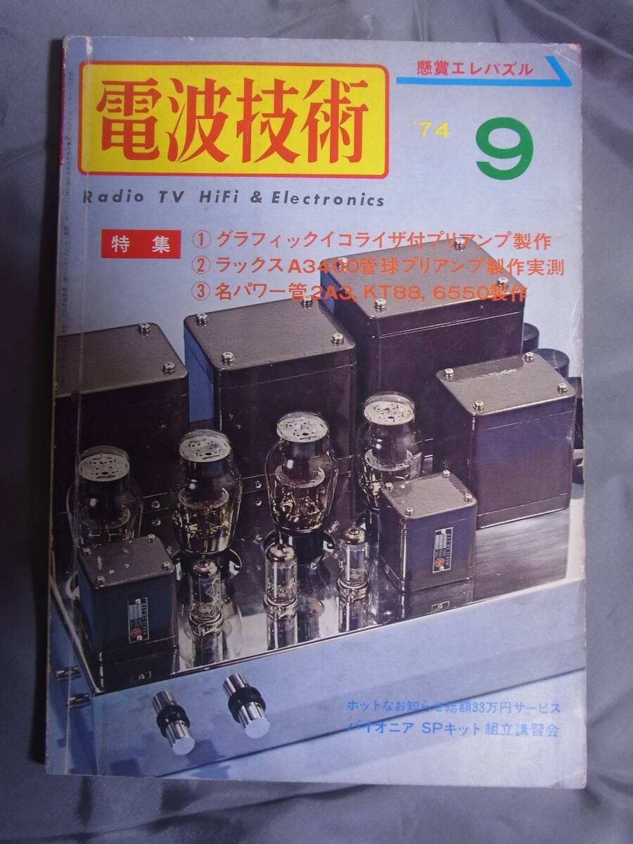 - 電波技術 1974年9月号 名パワー管2A3 KT88 6500製作 パイオニア SPキット組立講習会 近代科学者