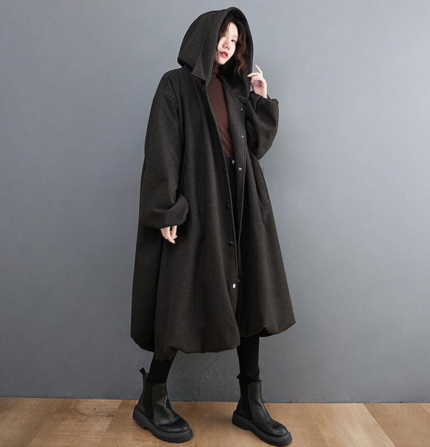 - Fサイズ■秋冬新品 カジュアル ゆったり 大きいサイズ フード付き 厚手 レディース ロングコート★黒