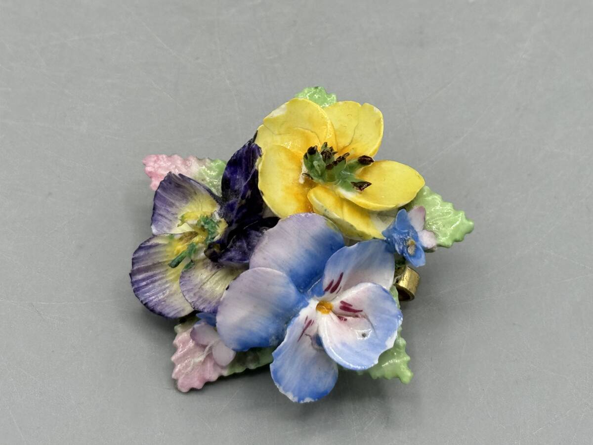 - 英国 ビンテージ 陶花 ブローチ 花 陶器 (③) ..