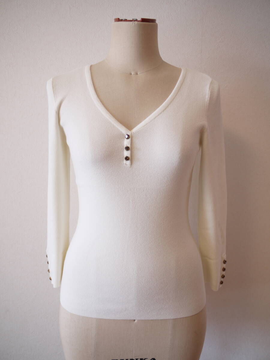 - DANA BUCHMAN PETITE ダナバックマン Vネックニット オフホワイト S 美品 クリーニング済