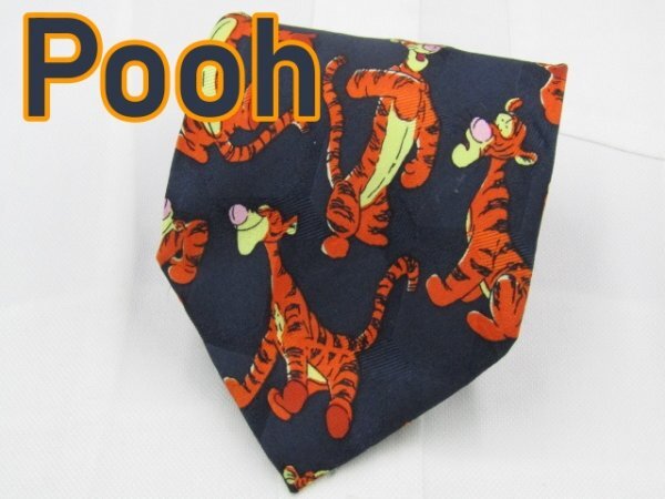 - 【ディズニー プー ティガー】 OC 675 プー Pooh ネクタイ 紺系 キャラクター ディズニー プリント