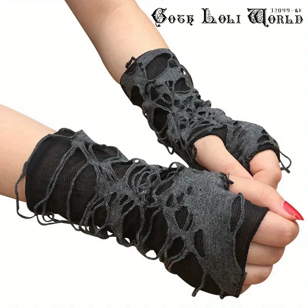 - GE100CE-FREE ダメージ加工アームウォーマー グレー色 男女兼用 メンズ レディース ゴスロリワールド ゴシック パンク ロック ロリィタ V系
