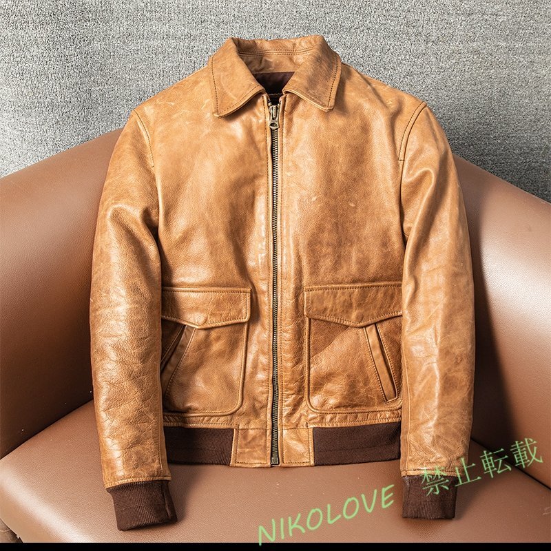 > 新品 G1レザージャケット メンズ アメカジ 上品 牛革 本革 革ジャンメンズジャケット ブラウン 秋冬M~5XL LG178