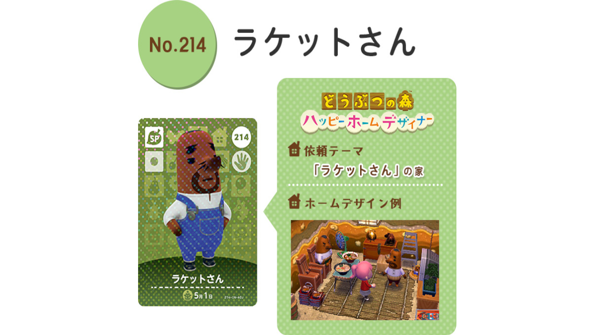 - 未使用品 どうぶつの森 amiiboカード No.214 ラケットさん