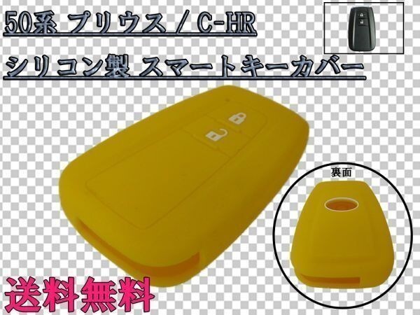- 送料込 送料無料 新型 50系 プリウス / C-HR CHR スマートキー ケース カバー シリコン製 イエロー/黄 検) LED ライト パーツ 最安 特価