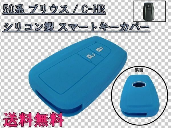 - 送料込 送料無料 新型 50系 プリウス / C-HR CHR スマートキー ケース カバー シリコン製 ライトブルー/水色 検) LED ライト パーツ