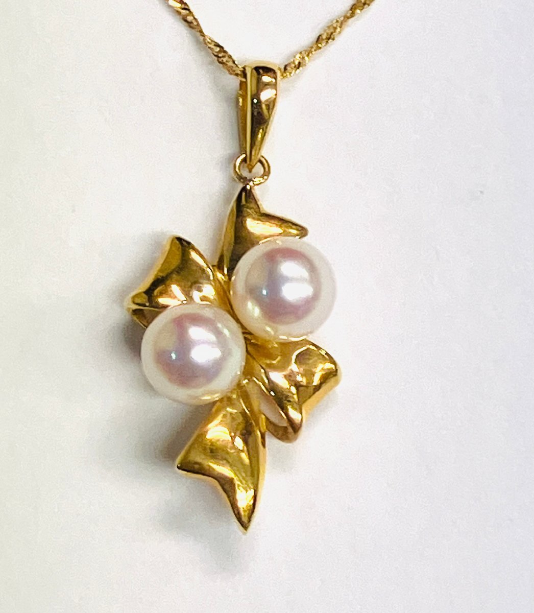 - qoj.Z5V07 K18 ゴールド リボンモチーフ パール ネックレス 6.0mm玉