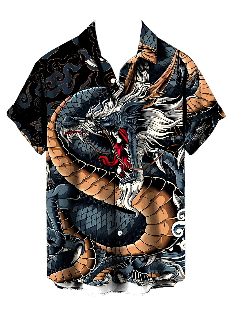 - 龍柄 アロハシャツ 半袖 シャツ ヤクザ ヤンキー オラオラ系 服 派手 メンズ ファッション ハワイアンシャツ 大きいサイズ