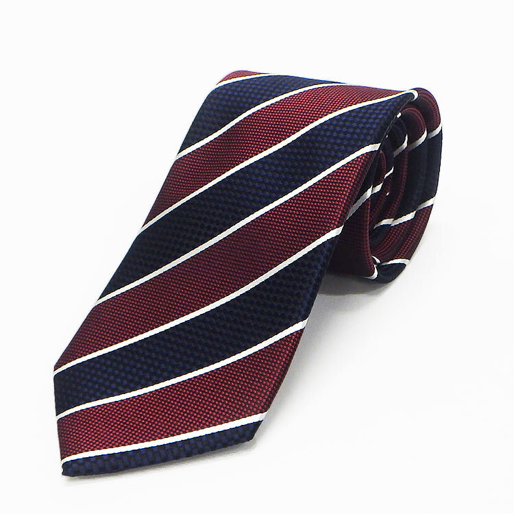 - 京都西陣織 ネクタイ シルク100% ワイン×黒紺/ストライプ メール便OK NJX52-WN