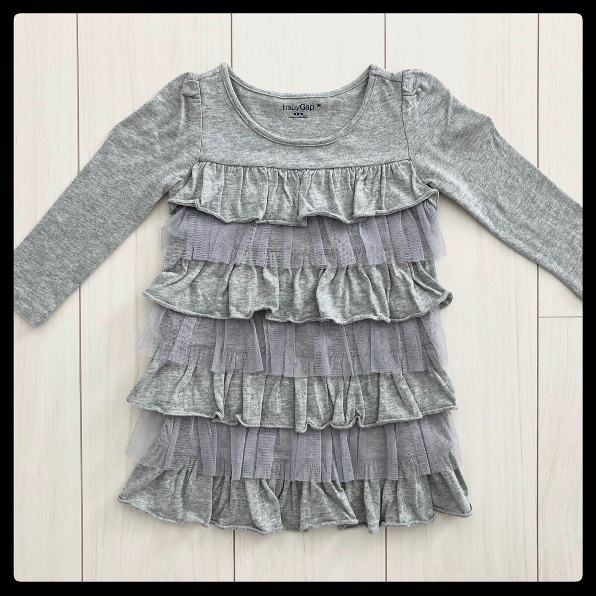 - 美品★baby Gap 長袖ティアード ワンピース 90★グレー フリルチュール付き★送料185円 幼児 女の子 定価2900円 ギャップ