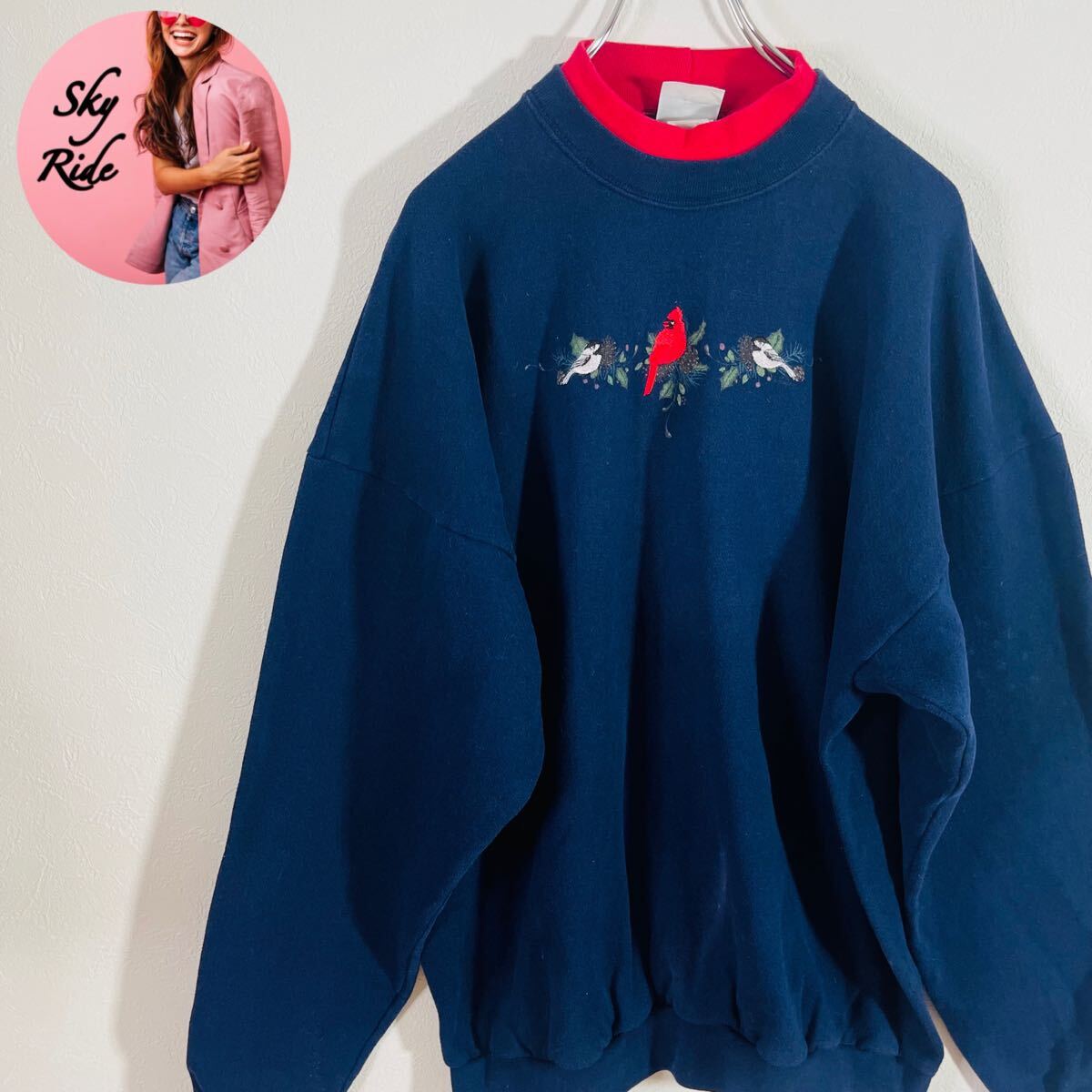 > Artisans SUNSCHEIN DESIGNS アルチザンズ メンズ ヴィンテージ プルオーバースウェット 鳥 トレーナー ネイビー XXL 90's 古着 #TB0972