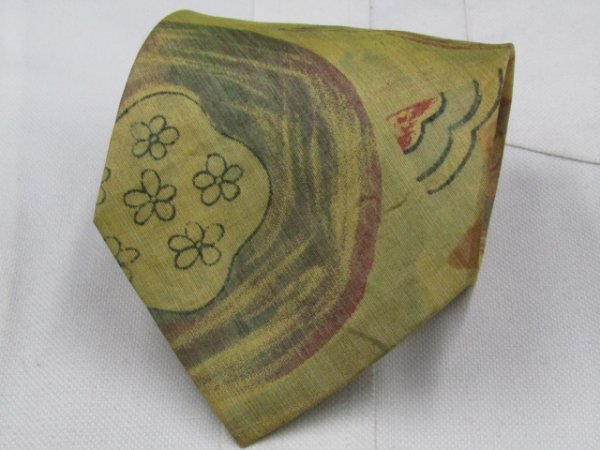 - 【麻混 AB 503 麻製品 黄系 アート柄 プリント