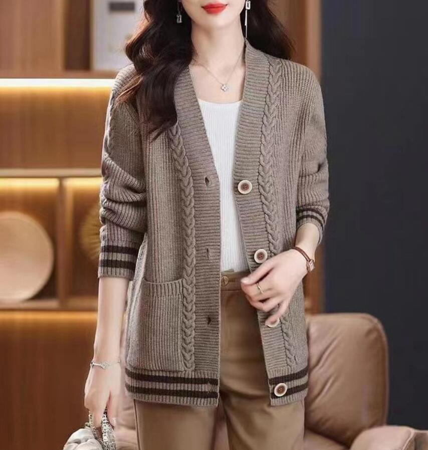 > 秋冬美品*レディース ニット カーディガン 長袖 厚手 ニット 前開き アウター 羽織 トップス キレイめ 仕事 オフィス ゆったり*キャメル