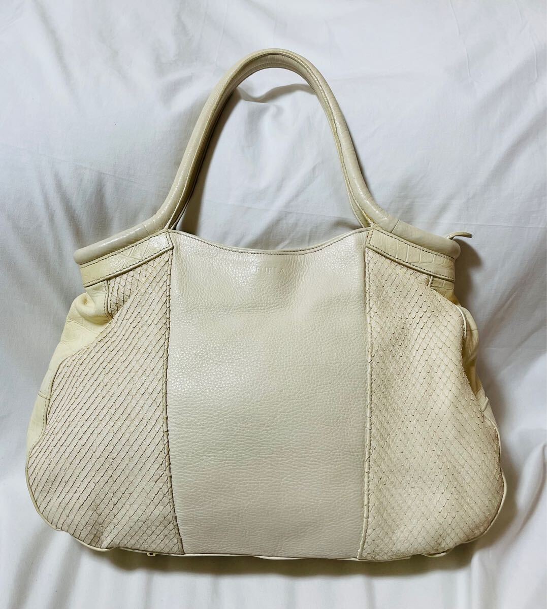 - イタリア製 FURLA フルラ レザー 型押し ハンドバッグ ショルダーバッグ