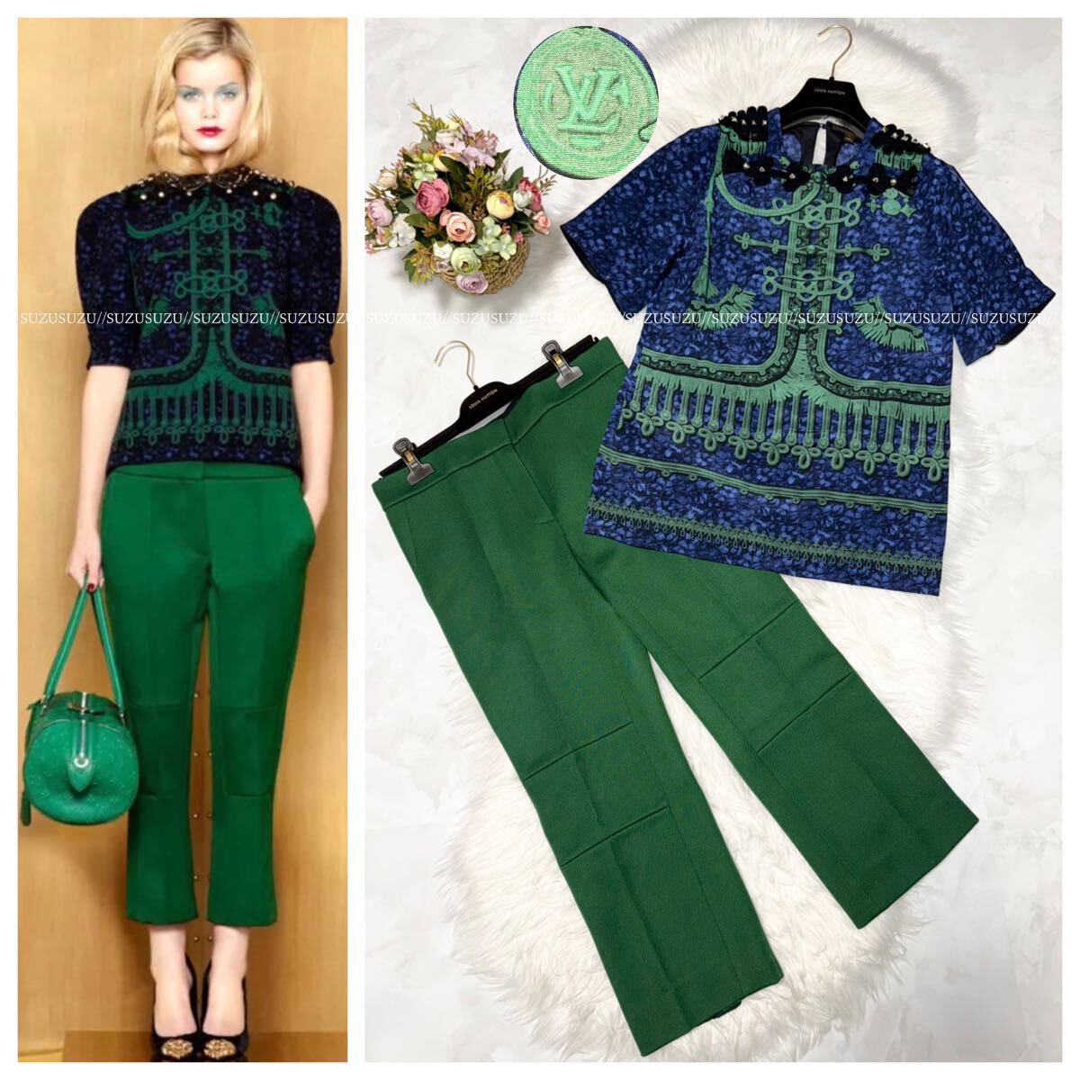 > 本物 美品 コレクションモデル ルイヴィトン スタッズ付 LV ナポレオンデザイン 上下 セットアップ パンツスーツ 34・38 LOUIS VUITTON
