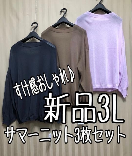 - 新品☆3Lすけ感サマーニット3枚セット♪重ね着にも♪おしゃれカラー☆x590