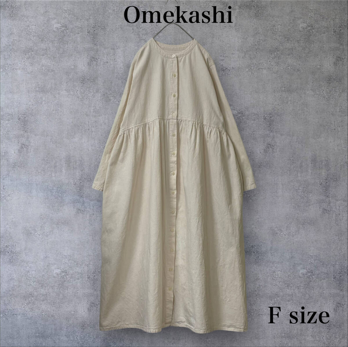 > 1442 Omekasi☆オメカシ たっぷりギャザーロングワンピース 前開き シャツワンピース 大きめ ナチュラル F 体型カバー
