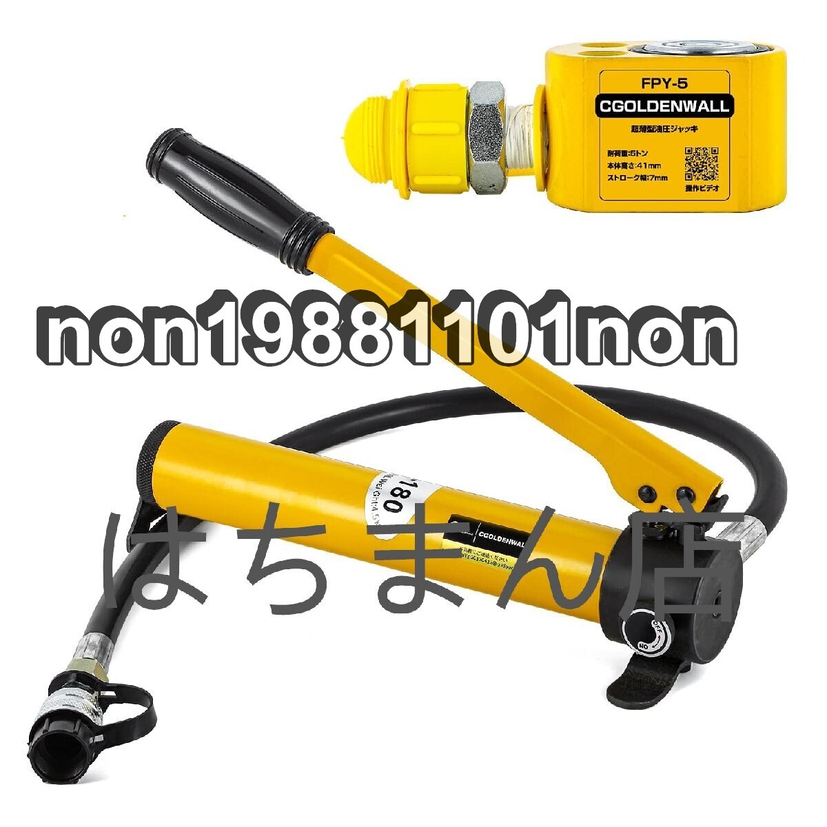 - 油圧ジャッキ 小型ジャッキ 最大耐荷重5t 最低位置41mm 建築 精密機械 災害対策 (5トン+ポンプ)