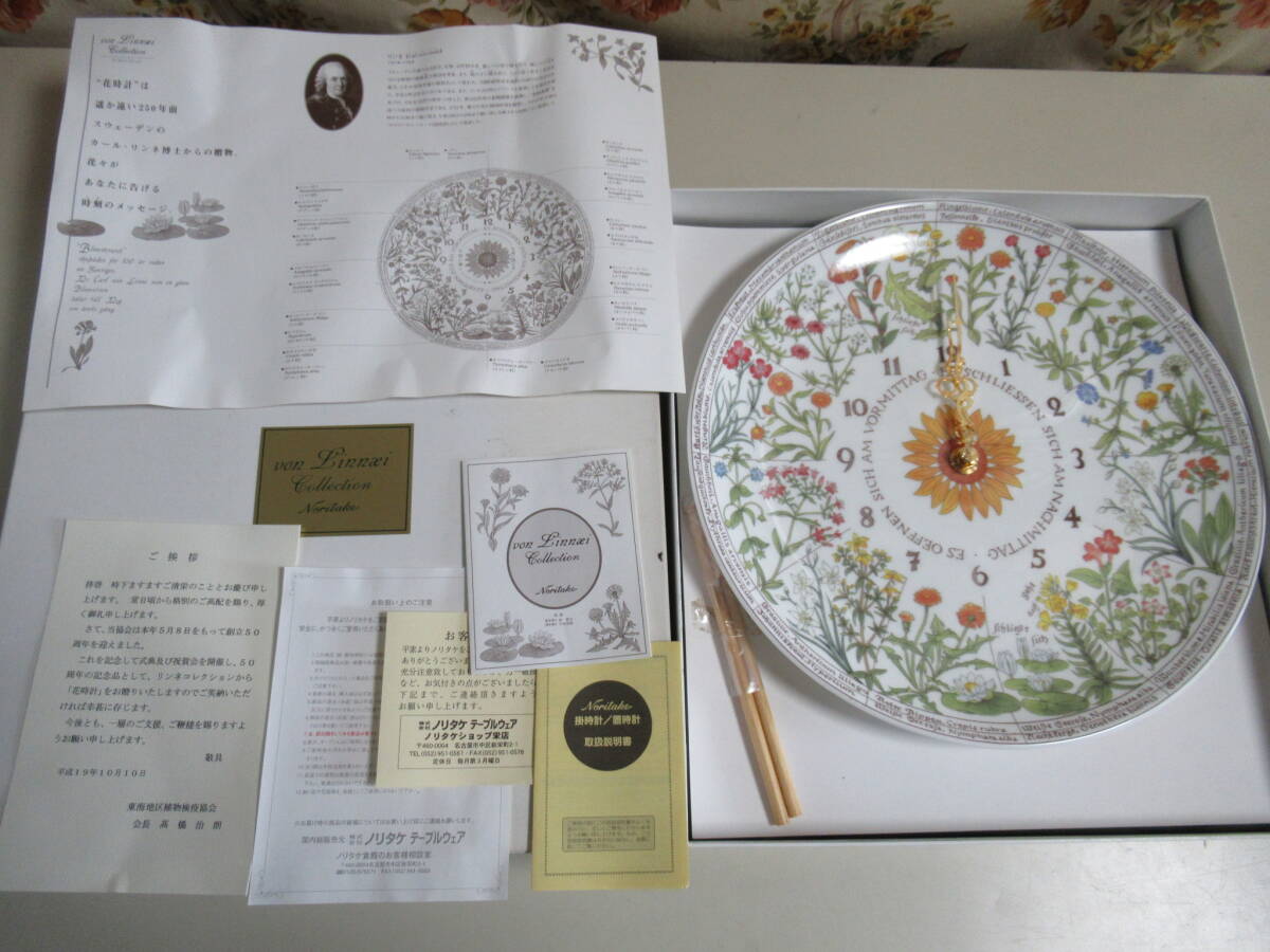 - R6 10★ノリタケ【リンネ 27㎝ 皿時計(スタンド付)】Y4360/4591 花時計 未使用箱入
